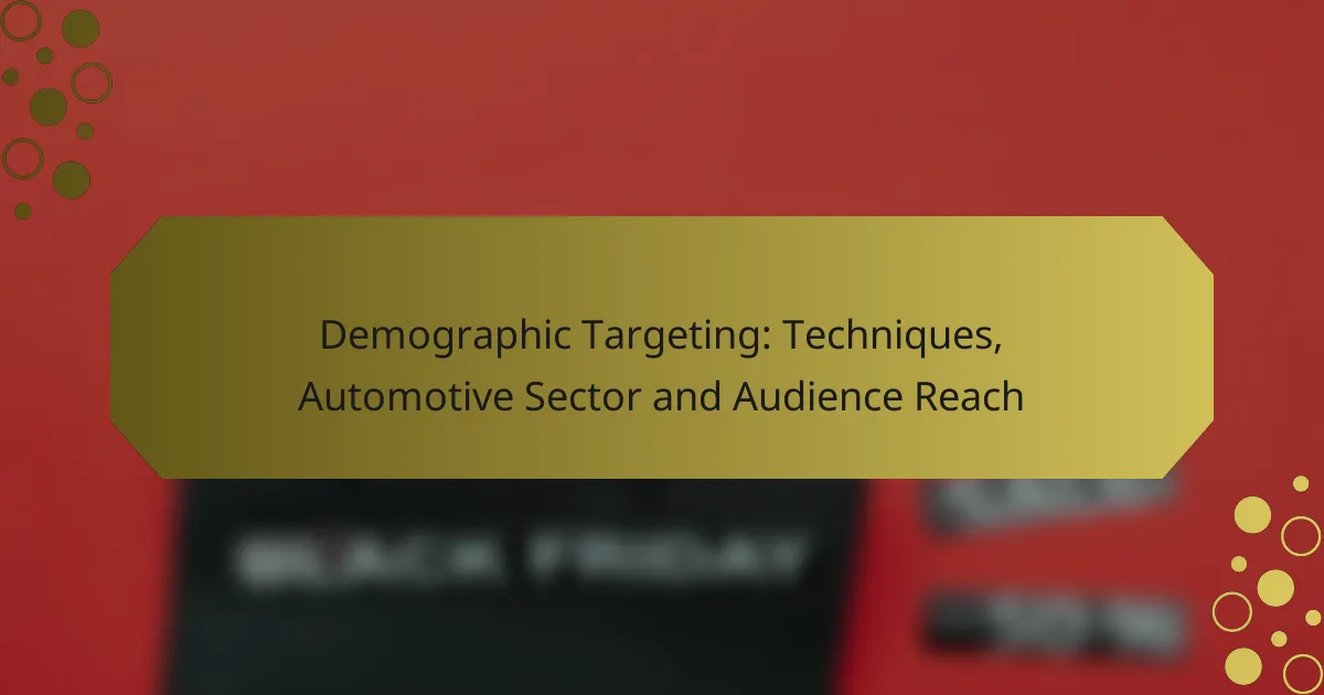 Demographic targeting techniques in the automotive sector leverage data to effectively reach specific consumer groups. By analyzing characteristics such as age, gender, income, and location, automotive companies can tailor their marketing strategies, enhancing audience engagement and improving conversion rates.